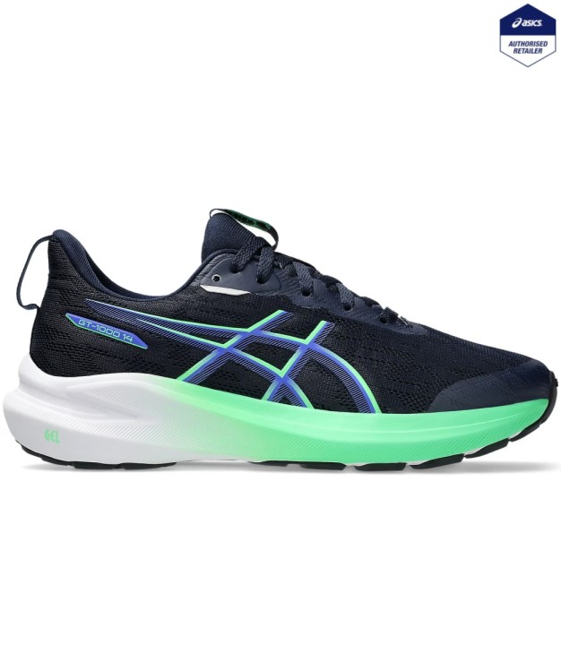 The GT-1000™ 14 GRADE SCHOOL shoe is a versatile style that's comfortable and durable for active minds. A kid's-specific last and a size checker on the sockliner help to accommodate growing feet. Additionally, the medial forefoot wrap-up outsole and toe rubber stitch are designed to improve durability. GEL® technology is placed in the heel. This helps young feet experience good comfort during daily activities.