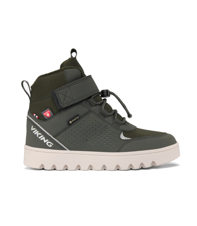 The perfect urban junior winter boot for the next generation, Fleek Warm GTX 1V matches premium foot comfort and protection with sustainability innovation. A higher cut upper featuring abundant reflective details for better visibility combines with a warm fleece lining and market-leading features like Primaloft insulation and a waterproof GORE-TEX membrane to ensure feet stay warm and dry throughout the season. Meanwhile, a rubber outsole sporting Viking's best urban grip will keep feet firm in any weather. Finally, a high percentage of recycled content reduces the need for virgin materials, earning Fleek Warm GTX a place with Viking's Less Impact Products.